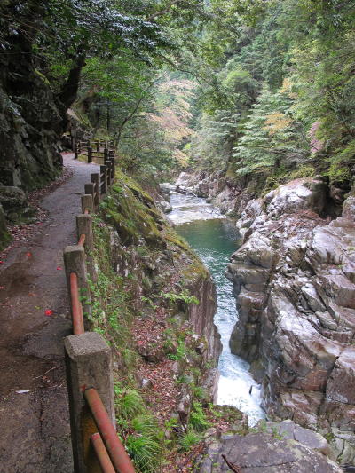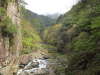 The next day we were up early to catch a bus to San Dan Kyo. Got there by 9:30 and walked the length of the gorge to the car park, then back again. It is 11.4 km of great walking - very beautiful - with cascades, rapids, camellias, mosses, and fantastic views all the way along the gorge. There was almost no-one there - maybe a dozen other people in four hours. It rained on and off, but never enough to make it unpleasant. We had to wait for the return bus, so we walked around the village for a while, getting a good idea of how the irrigation system worked for the rice paddies.