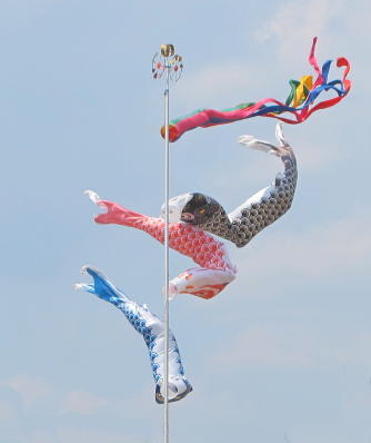 We walked all around the waterways - the park where the earthquake had caused devastation was now rebuilt, with multi-story high-flying roadways soaring overhead - scary. In the morning we left our luggage at the hotel and explored a bit of the city, searching out two shrines marked on the map. One was a glorious vermilion shinto shrine where a ceremony was performed for a baby while we were there. The other was Chinese - good carvings and lots of dragons. Walked back to Shin-kobe and took the cable-car up to the herb garden. Great view of Kobe from up the hill. Lunched on "rice on a stick" and German beer and sausage, at a very Bavarian-looking building at the top of the park then walked down the hill through the garden. They have fantastic flowers, including roses and fuchsias.