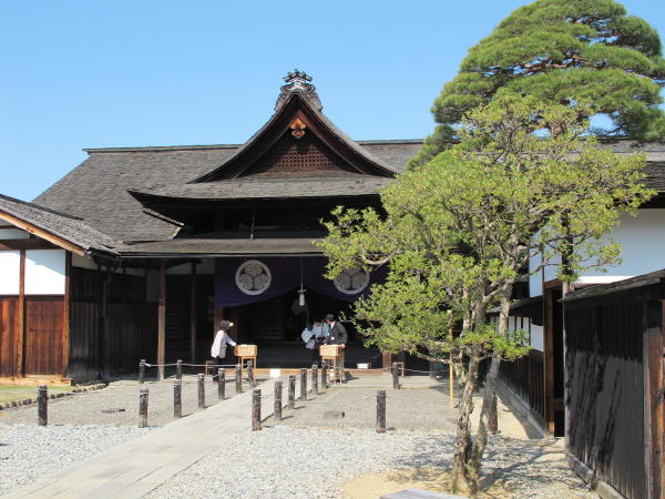 Takayama is well-known for its old buildings. The "Old Prefecture Offices" sounds dry and boring, but they were one of the more interesting preserved buildings we'd yet visited. We were also very impressed with the "floats" museum, with its display of juggernaut-like carts. One of the walks took us well out of town, and revealed a range of snowy mountains in the distance.