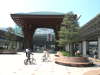 Then a third local train completed the journey to Kanazawa. The entry statement for the railway station is fairly amazing - a gate to rival those at many of the more spectacular temples, and a clock and welcome message fountain - all the writing in both English and Japanese was formed by water spouts.