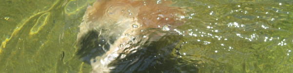 A rock in a rast-moving stream A monkey diving for grain A branch underwater I have no idea