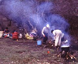 That afternoon the snow set in solidly, and we were unbelievably cold. We huddled in our sleeping bags shivering, and philosophically reduced the necessary world to four things - warmth, food, shelter, and somewhere to go to the loo. You do get very basic under these types of conditions. Even the evening meal didn't warm us up, and we all spent a frozen night, looking forward to the morning.