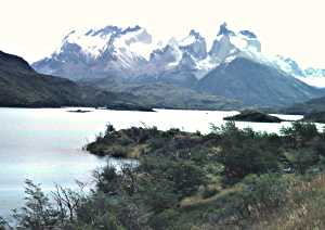 Our second tour was a day trip to Torres del Paine National Park. As such trips go it wasn't too bad. We drove out through the desert countryside, with our first stop at the milodon cave. This is really a huge overhang, created by the ocean when this part of the coast was much lower than it is today, and used as a shelter by our cave-man ancestors. The remains of a giant ground sloth were found here, and a fibreglass replica sits near the entrance. The trip continued out to the park, with occasional sightings of native hares, ñandu (lesser rhea) and even a zorro (native fox). At the park entrance there was a family of zorro begging food from the tourists, but the cubs were very shy.