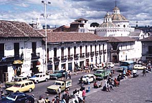 At the border there was the usual chaos. The actual border is a river, with immigration on the respective banks. On the Peruvian side a flourishing market provides common household goods, bought in huge amouts by people going to Ecuador. We had the immigration building to ourselves - everyone else seemed to just trot over the bridge without giving it a second thought. The officer in charge went through the formalities and stamped our passports, but wouldn't give them back. Instead he carefully explained something to us in Spanish. I interpreted for Geoff: "He's saying something about the cost of the upkeep of the building" I said, looking around me at the tiny tin shed. Geoff doesn't speak anything other than English, but he is much quicker than me to catch implications. "He wants a bribe". Oh. Yes. Should have figured that out for myself. A little money one way, the passports back in our hands, and we were across the bridge and negotiating the Ecuador immigration. Just as we finished and were about to head for the bus Geoff realised that he had left our guide book back in the border shed in Peru. He ran back, prised his book away from the Peruvian officials, waved to the Ecuadorian boder officials as he sauntered through, and we were right to go. The bus trip to Guayaquil was amazing. Not for the condition of the bus or for the volume of the speakers, both of which were astounding in their own right, but for the smuggling operations that were obviously taking place. All that soap powder and loo paper bought in the market in Peru was stacked everywhere on the bus - under the seats, under our feet, around the driver, on the roof. Less than an hour down the road we came to our first checkpoint - Ecuador had them on every road, and buses like ours were stopped regularly, in some places at every town along the way. Our first such stop was the focus of much drama. Women, who made up the bulk of the "smugglers" screamed and cried. Much yelling and hysterics took place, then a big fat mama of a woman took the officials aside and talked earnestly to them, thrusting money into their hands. Suddenly the treatened unloading and searching of the immense load on the roof of the bus was cancelled, there were smiles all around, and we drove off to the next checkpoint, to repeat the drama all the way to Guayaquil.