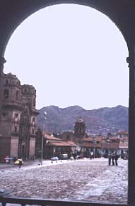 Arriving in La Paz after dark is breath-taking. From the monotonous black of the countryside we were suddenly spiralling down into a bowl of lights, with the city far below us. We really liked the city, and, again, found a great place to stay, where the people made us feel really welcome. We were booked to fly back to Santiago and then home from La Paz, but had a week to spare. The flourishing black market made air fares unbelievably cheap, tempting us to take a quick side-trip to Potosi, where we spent Christmas. Christmas day itself was a bit bare - most of the market was shut, and we were lucky to get a cup of coffee for breakfast. Lunch was sharing a packet of dry biscuits with another traveller, and the three of us counted outselves very lucky to find a café open that night, where we could finally get some food. Potosi is a fantastic place with a terrible history of exploitation - a major silver mine is on the outskirts of town, and many people were worked to death there. The town is actually very attractive - narrow cobbled streets, colourful local dress, wonderful markets.